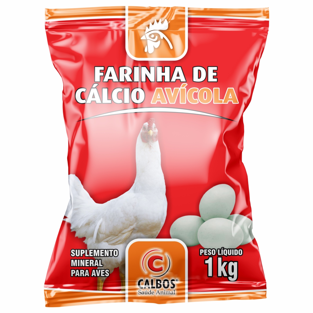 FARINHA DE CÁLCIO AVÍCOLA é um suplemento mineral para aves contendo cálcio, fósforo e outros minerais. Melhora a qualidade da casca dos ovos, evita a debicagem dos ovos e melhora a conversão alimentar das aves.